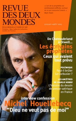 C’est l’événement de notre numéro d’été : Michel Houellebecq, dans une longue interview, nous parle de Dieu, qui l’a rejeté, de l’abolition du cogito cartésien, du pot-au-feu, de l’idéologie taoïste de l’entreprise, de Charlie Hebdo, et de son livre polémique Soumission, sur lequel, nous dit-il, il s’exprime pour la toute dernière fois. Dans ce roman, Michel Houellebecq décrit la victoire d’un parti islamique en France, en 2022. Son héros, dépouillé successivement de sa femme, de ses parents, de son travail et même de la possibilité d’une conversion, accède à la « non-existence », et se résout à « adhérer à ce qu’on lui propose ». Michel Houellebecq refuse le terme d’écrivain prophète : « Je constate, puis je fais des projections.[...] Quand Orwell écrit 1984 en 1948, ce n’est pas une prédiction, c’est une expression des peurs de son époque. »