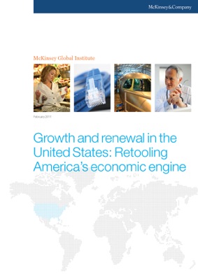 Growth and renewal in the United States: Retooling America's economic engine examines America's growth challenge and explains why productivity is such an imperative for rising living standards and national competitiveness. It also dispels some of the myths about productivity, including the notion that there is a necessary trade-off between productivity and jobs. And while some economists suggest that economic growth and technological innovation in the United States have reached a plateau, the McKinsey Global Institute's analysis suggests otherwise. There are enough opportunities to apply best practice across the economy and tap the next wave of innovation to achieve the broad-based productivity acceleration necessary to match, and even surpass, historic GDP growth rates. Finally, the research outlines a seven-point agenda for government and business to address economy-wide issues that today hinder US productivity and growth.