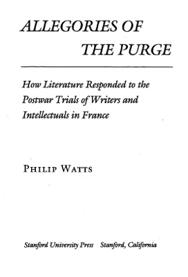 In their reactions to the purge, these writers mobilized a number of discourses, ranging from the historical, economic, and literary to the sexual, medical, and corporeal. To understand their views on the trials, it is useful to read their texts as allegories of the purge. At one point or another they all speak about the purge through a series of metaphoric substitutions maintained through an extended narrativeāwhether this narrative is a critical essay, a novel, or a collection of poems. The texts also give the reader a code for reading them allegorically, and this code is the purge archive, whose records, debates, and arguments reshaped the way writers understood their craft.