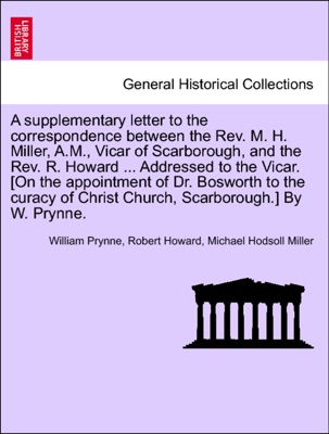 A supplementary letter to the correspondence between the Rev. M. H. Miller, A.M., Vicar of Scarborough, and the Rev. R. Howard ... Addressed to the Vicar. [On the appointment of Dr. Bosworth to the curacy of Christ Church, Scarborough.] By W. Prynne. - William Prynne, Robert Howard & Michael Hodsoll Miller