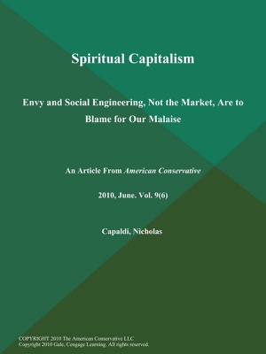 Spiritual Capitalism: Envy and Social Engineering, Not the Market, Are to Blame for Our Malaise - Nicholas Capaldi