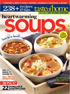 Whether youâre looking for classics such as chicken noodle soup, crowd-pleasers to share like spicy chili or new spins on old favorites, youâll find them all in Taste of Home Heartwarming Soups.
