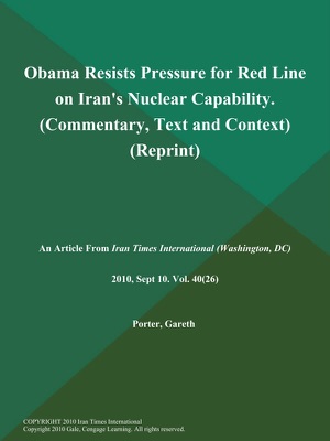 Obama Resists Pressure for Red Line on Iran's Nuclear Capability (Commentary, Text and Context) (Reprint) - Gareth Porter