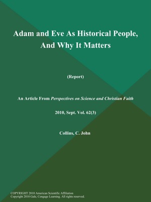 Adam and Eve As Historical People, And Why It Matters (Report) - C. John Collins