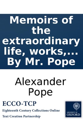 Memoirs of the extraordinary life, works, and discoveries of Martinus Scriblerus. By Mr. Pope, Alexander Pope. Memoirs of the extraordinary life, works, and discoveries of Martinus Scriblerus. By Mr. Pope Memoirs of Martinus Scriblerus Pope, Alexander, 1688-1744. [2],12,165,[1]p. ; 12⁰. Dublin : printed by and for George Faulkner, 1741. P. 165 bears the statement "The end of the first book". No more published. Reproduction of original from the British Library. Griffith, 538 English Short Title Catalog, ESTCT5686. Electronic data. Farmington Hills, Mich. : Thomson Gale, 2003. Page image (PNG). Digitized image of the microfilm version produced in Woodbridge, CT by Research Publications, 1982-2002 (later known as Primary Source Microfilm, an imprint of the Gale Group).