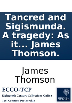 Tancred and Sigismunda. A tragedy: As it is acted at the Theatre-Royal in Drury-Lane, by His Majesty's servants. By James Thomson., James Thomson. Tancred and Sigismunda. A tragedy: As it is acted at the Theatre-Royal in Drury-Lane, by His Majesty's servants. By James Thomson. Thomson, James, 1700-1748. v,[3],83,[1]p. ; 8⁰. London : printed for A. Millar, 1745. Line 1 on p. iv ends: by; without the price on the titlepage. Variant 1: line 1 on p. iv ends: by; with the price on the titlepage. Variant 2: a different setting of pp. [iii], iv; line 1 on p. iv ends: ex-; with the price on the titlepage. The ornaments are those used by Henry Woodfall. Reproduction of original from the British Library. English Short Title Catalog, ESTCT49863. Electronic data. Farmington Hills, Mich. : Thomson Gale, 2003. Page image (PNG). Digitized image of the microfilm version produced in Woodbridge, CT by Research Publications, 1982-2002 (later known as Primary Source Microfilm, an imprint of the Gale Group).