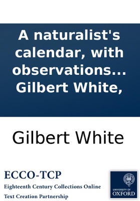 A naturalist's calendar, with observations in various branches of natural history; extracted from the papers of the late Rev. Gilbert White,, Gilbert White. A naturalist's calendar, with observations in various branches of natural history; extracted from the papers of the late Rev. Gilbert White, White, Gilbert, 1720-1793. 170,[6]p.,plate ; 8⁰. London : printed for B. and J. White, 1795. With a table of contents at the end. Reproduction of original from the British Library. English Short Title Catalog, ESTCT39655. Electronic data. Farmington Hills, Mich. : Thomson Gale, 2003. Page image (PNG). Digitized image of the microfilm version produced in Woodbridge, CT by Research Publications, 1982-2002 (later known as Primary Source Microfilm, an imprint of the Gale Group).