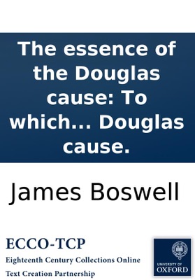 The essence of the Douglas cause: To which is subjoined, some observations on a pamphlet lately published, intitled, Considerations on the Douglas cause., James Boswell. The essence of the Douglas cause: To which is subjoined, some observations on a pamphlet lately published, intitled, Considerations on the Douglas cause. Boswell, James, 1740-1795. [4],77,[1],[2],18p. ; 8⁰. London : printed for J. Wilkie, 1767. Anonymous. By James Boswell. 'Some observations' has separate pagination; the register is continuous. 'Some observations' was suppressed in later copies (Pottle). Reproduction of original from the British Library. Pottle, F. Literary career of James Boswell., 19 English Short Title Catalog, ESTCT124613. Electronic data. Farmington Hills, Mich. : Thomson Gale, 2003. Page image (PNG). Digitized image of the microfilm version produced in Woodbridge, CT by Research Publications, 1982-2002 (later known as Primary Source Microfilm, an imprint of the Gale Group).