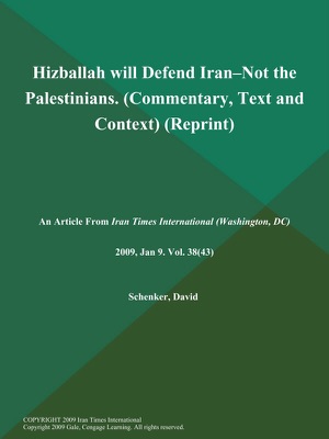 Hizballah will Defend Iran--Not the Palestinians (Commentary, Text and Context) (Reprint) - DC) Iran Times International (Washington