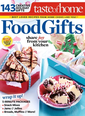 Save time and money and warm hearts this holiday season with a special present from the kitchen. With âTaste of Home Food Giftsâ youâll find 143 thoughtful hostess gifts, yummy cookies, decadent fudge and so much more. Each no-fuss recipe makes a terrific surprise for neighbors, teachers, best friends, relatives and others. Need a gift for the person who has everything? Youâll find it here!