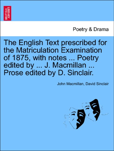 The English Text prescribed for the Matriculation Examination of 1875, with notes ... Poetry edited by ... J. Macmillan ... Prose edited by D. Sinclair. - John Macmillan & David Sinclair