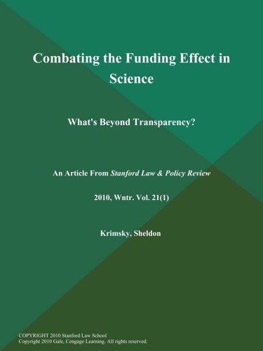 Combating the Funding Effect in Science: What's Beyond Transparency? - Sheldon Krimsky