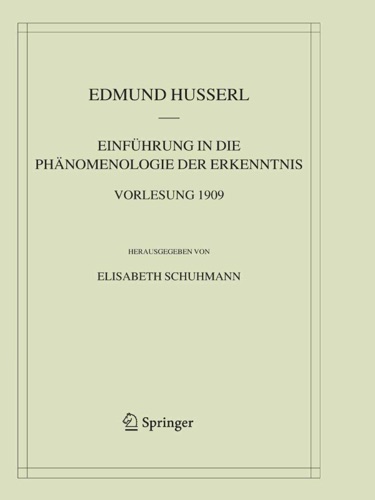 Einführung in die Phänomenologie der Erkenntnis. Vorlesung 1909 - Elisabeth Schuhmann & Edmund Husserl