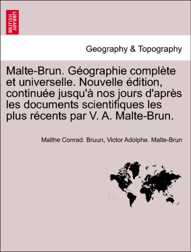 Malte-Brun. Géographie complète et universelle. Nouvelle édition, continuée jusqu'à nos jours d'après les documents scientifiques les plus récents par V. A. Malte-Brun. Tome Troisieme - Malthe Conrad. Bruun & Victor Adolphe Malte-brun