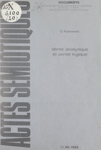 Vérité analytique et vérité logique - Georges Kalinowski